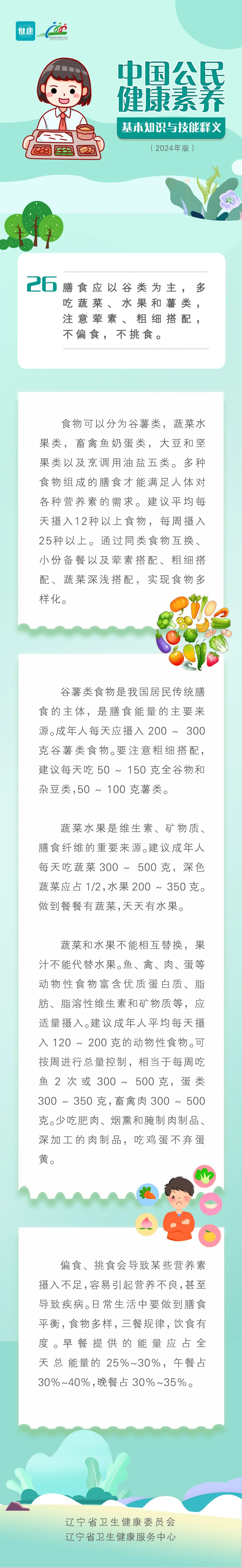 新版健康素养66条|注意膳食搭配,不偏食不挑食